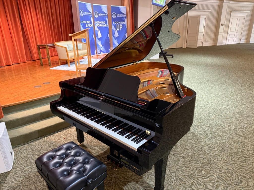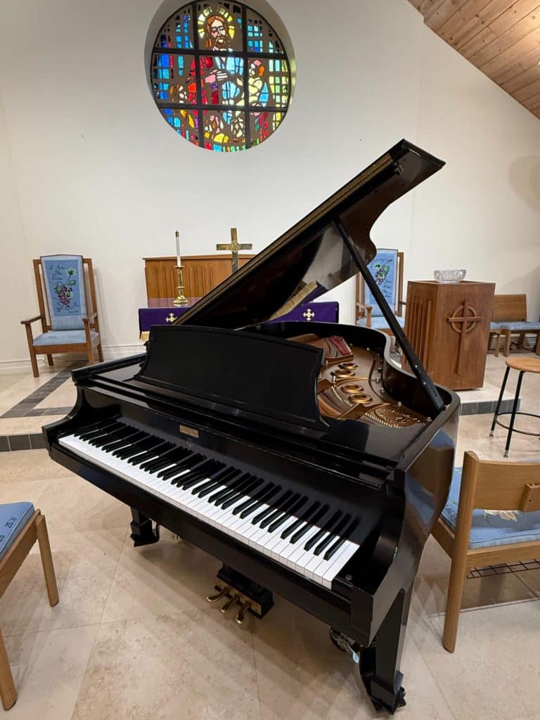 Members and friends of Moorings Presbyterian Church give thanks for the generous gift of a Yamaha Model C6 grand piano, donated in May 2025 by an anonymous individual.
